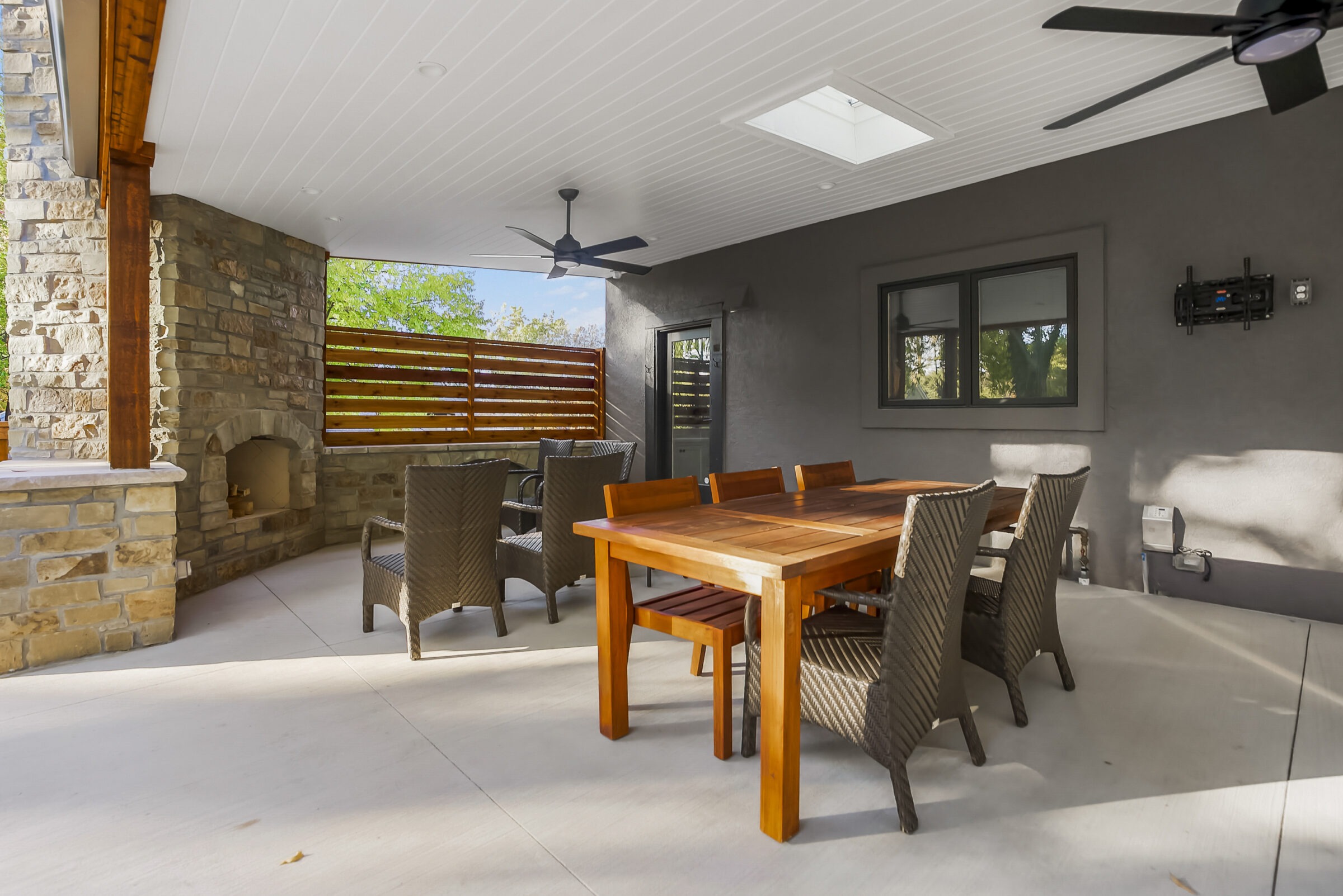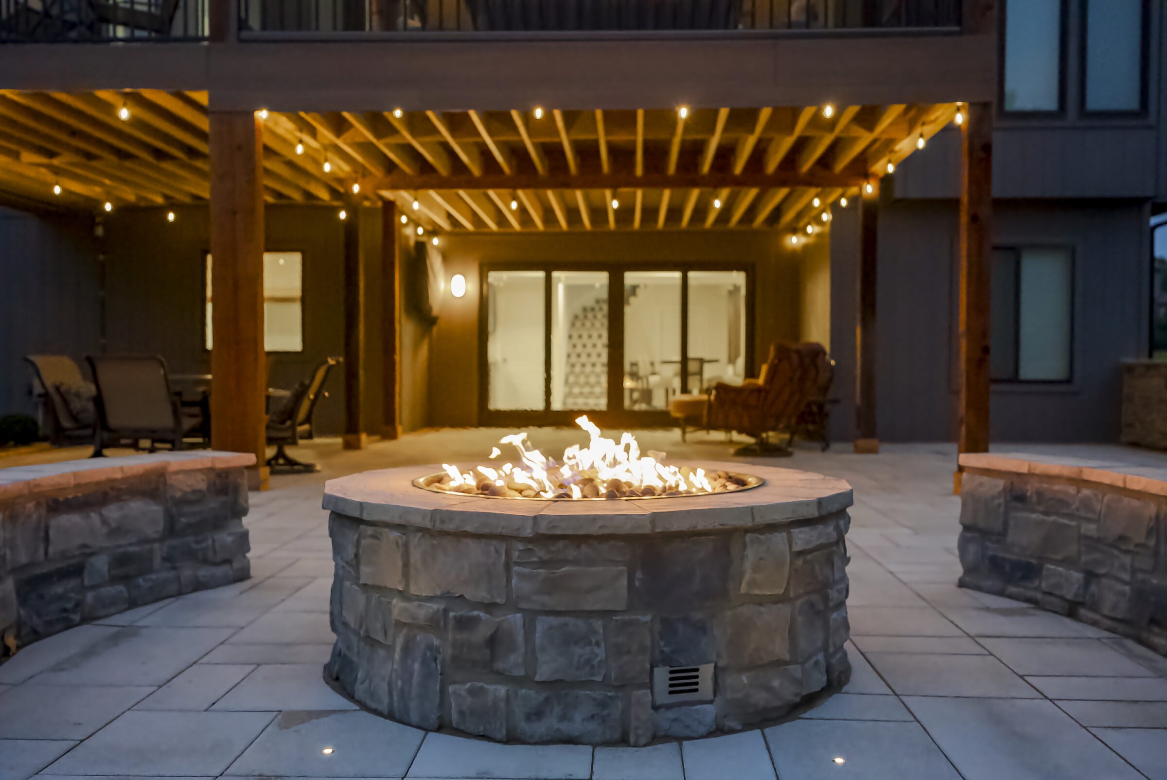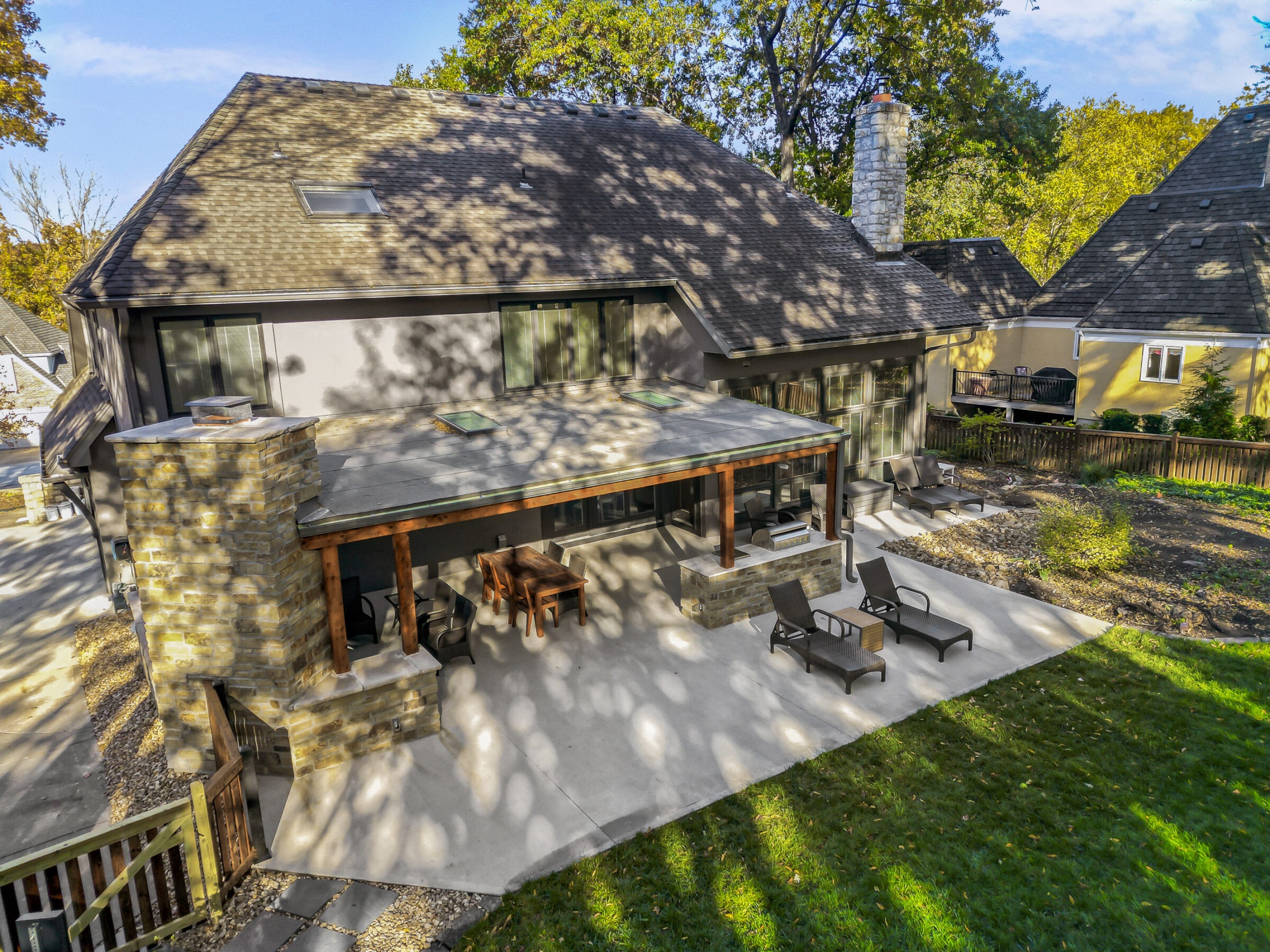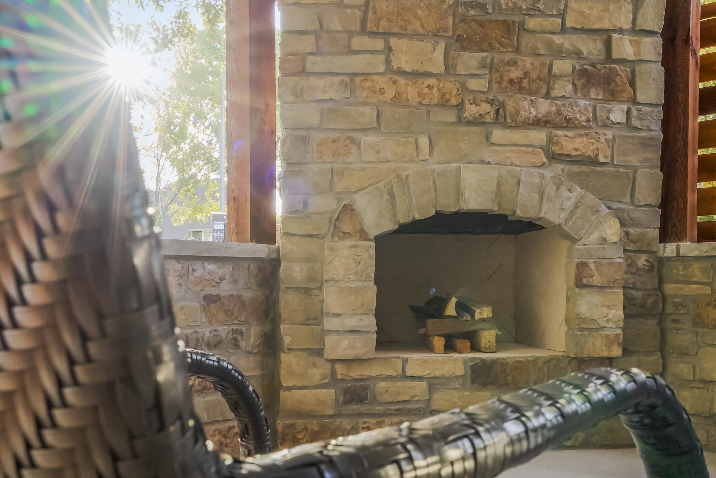 This custom-built Edwardian-style fireplace, was designed to reflect the timeless elegance of the early 20th century while perfectly complementing the aesthetic of the home. Crafted with a blend of high-quality brick and stunning Indian limestone, this fireplace offers a seamless match to the homes architecture, ensuring a harmonious transition from indoor to outdoor living. The fireplace stands over 20’ tall and 14’ wide, and includes beautiful seating benches along the front and both sides of the fireplace.