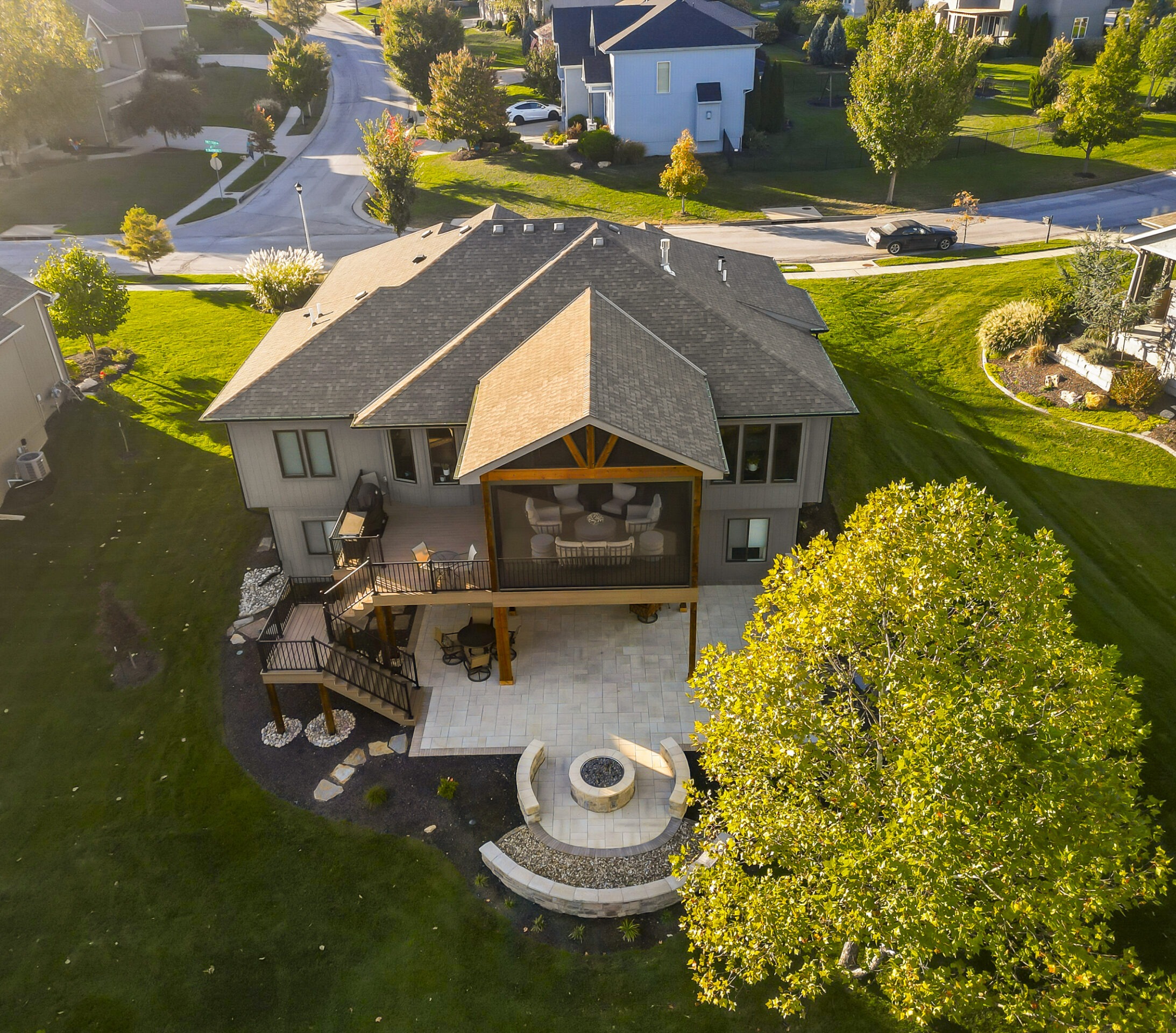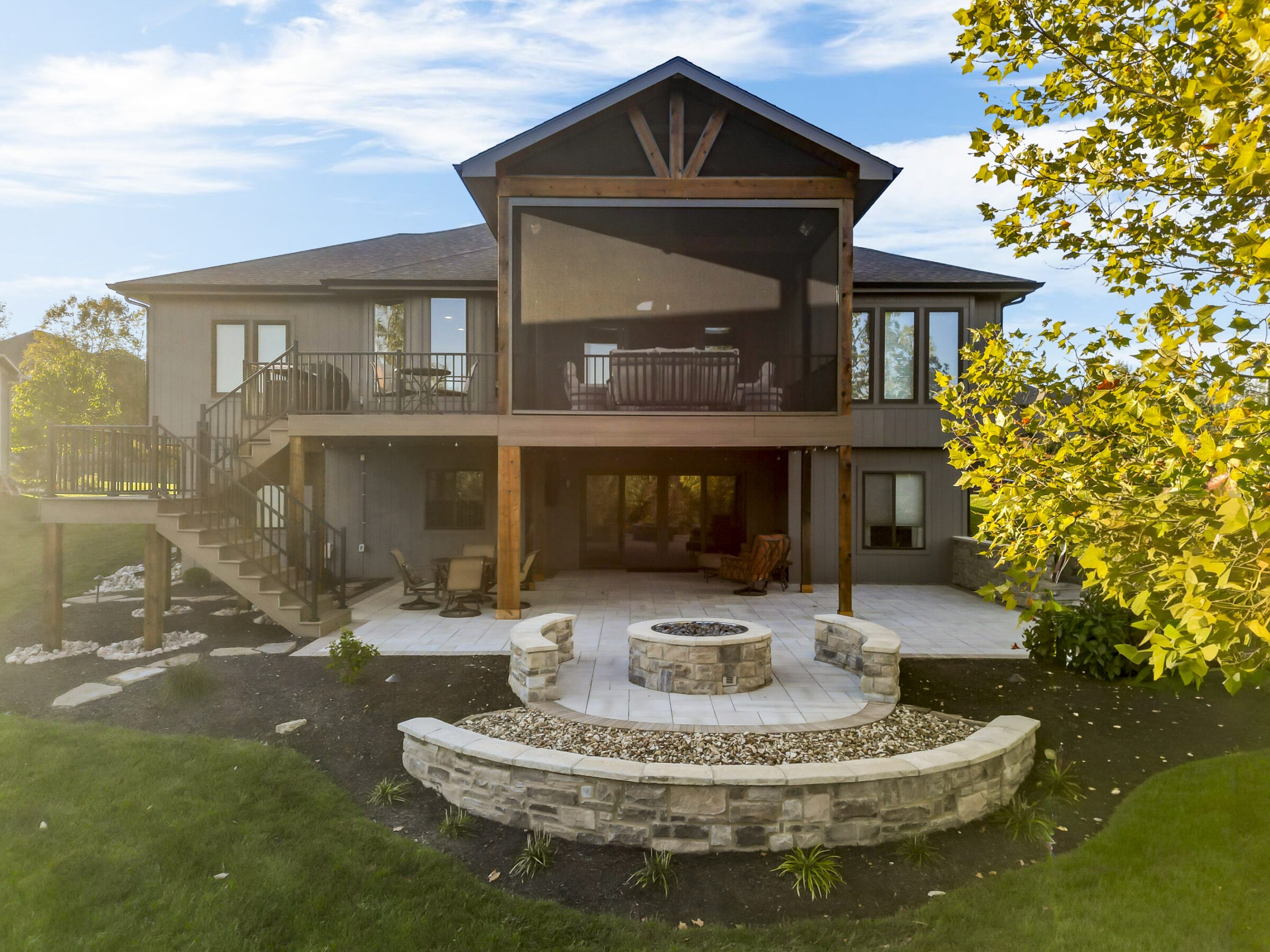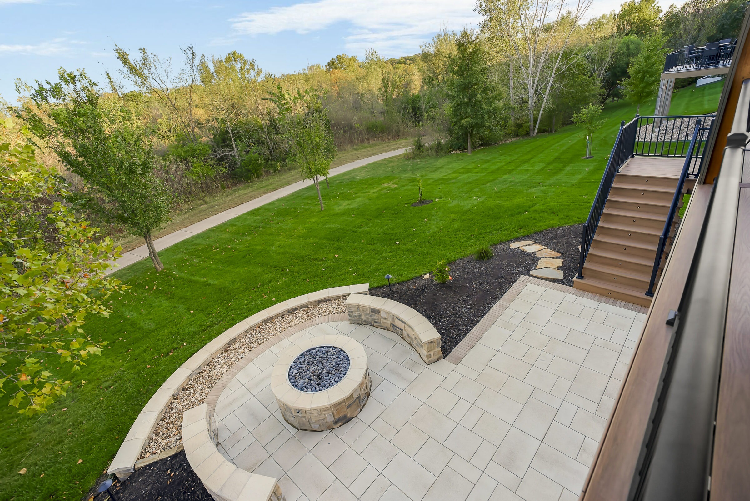 This custom-built Edwardian-style fireplace, was designed to reflect the timeless elegance of the early 20th century while perfectly complementing the aesthetic of the home. Crafted with a blend of high-quality brick and stunning Indian limestone, this fireplace offers a seamless match to the homes architecture, ensuring a harmonious transition from indoor to outdoor living. The fireplace stands over 20’ tall and 14’ wide, and includes beautiful seating benches along the front and both sides of the fireplace.