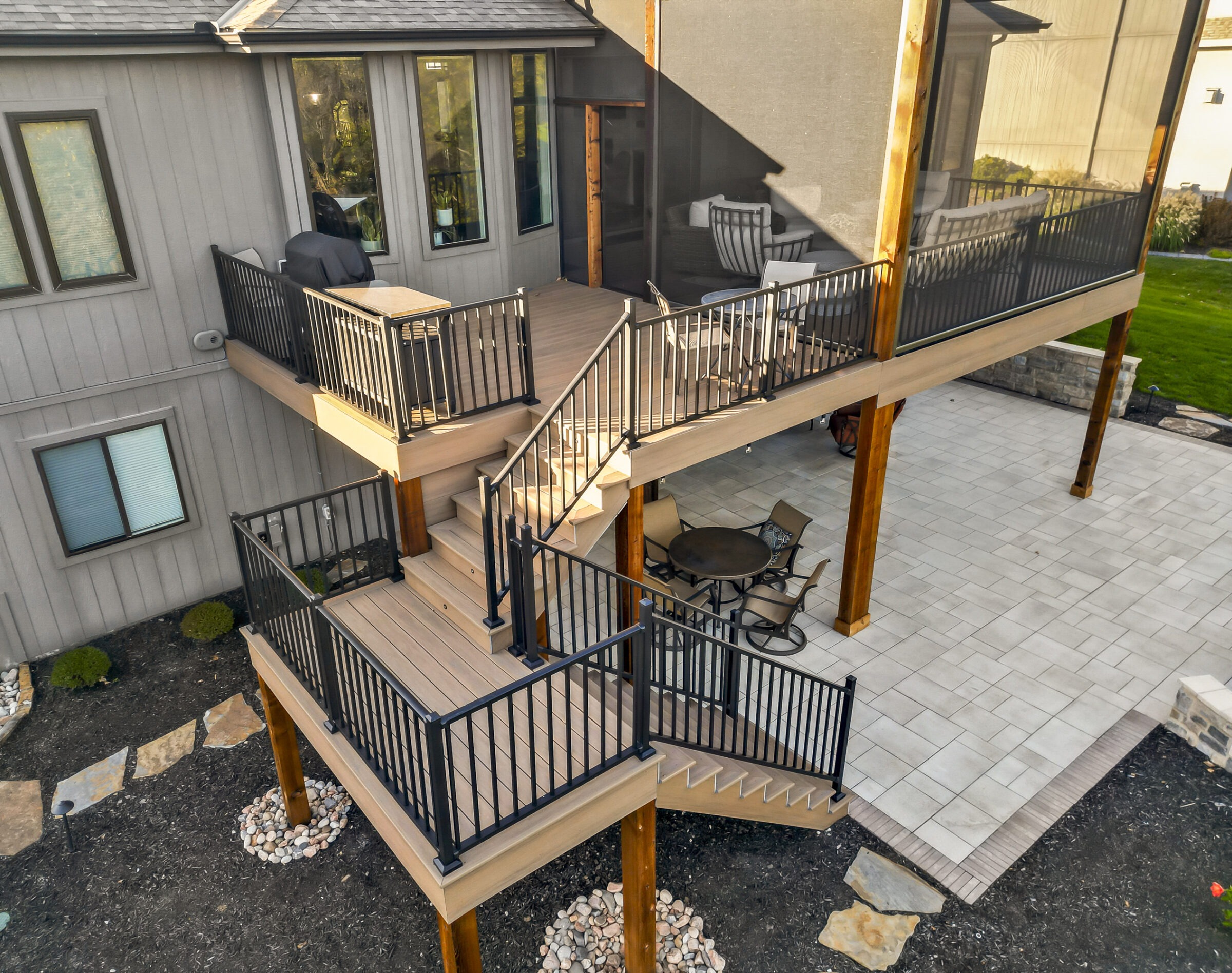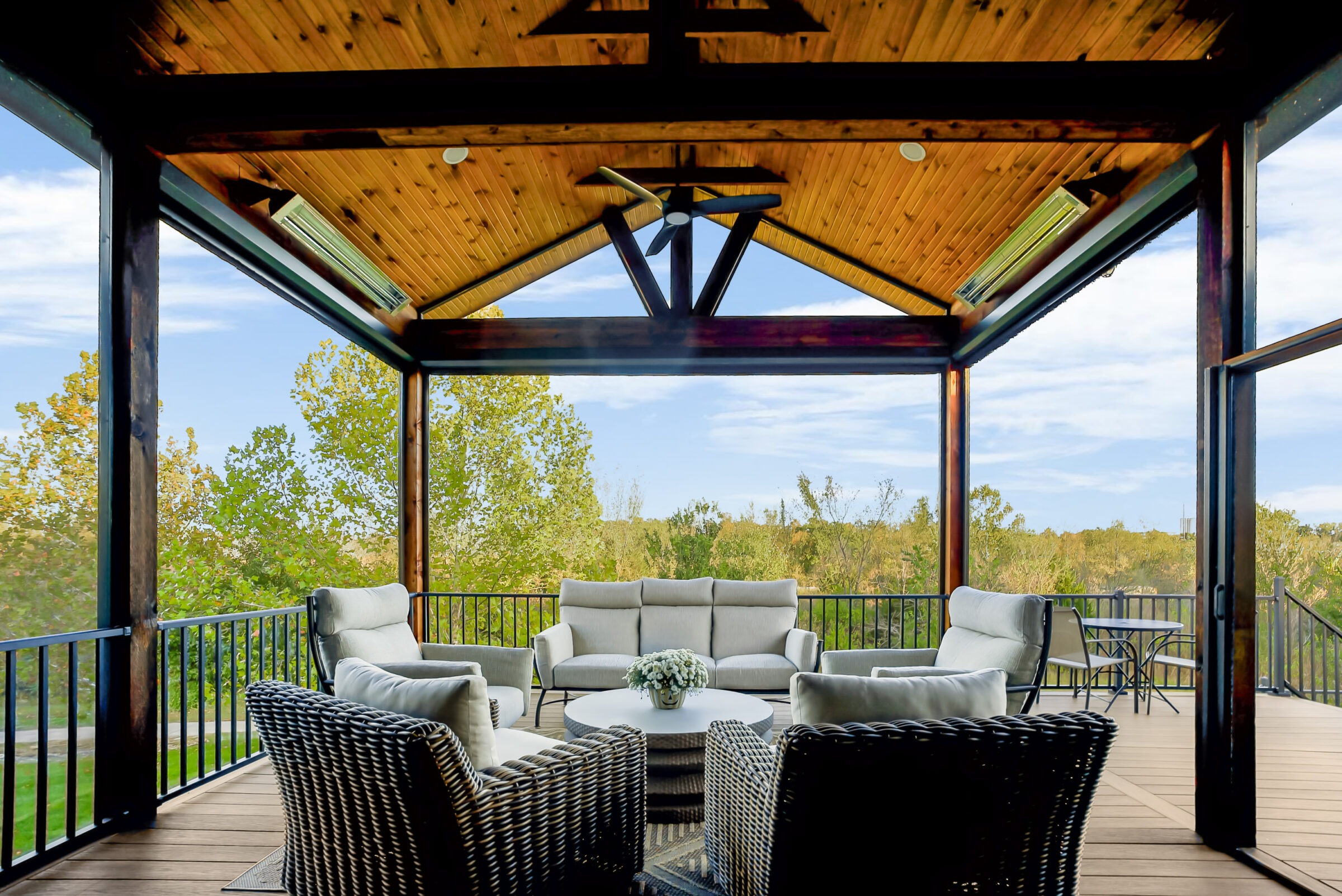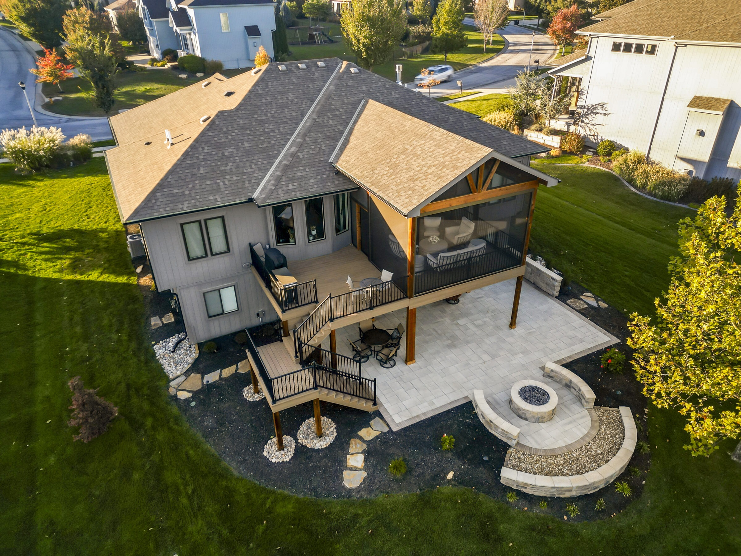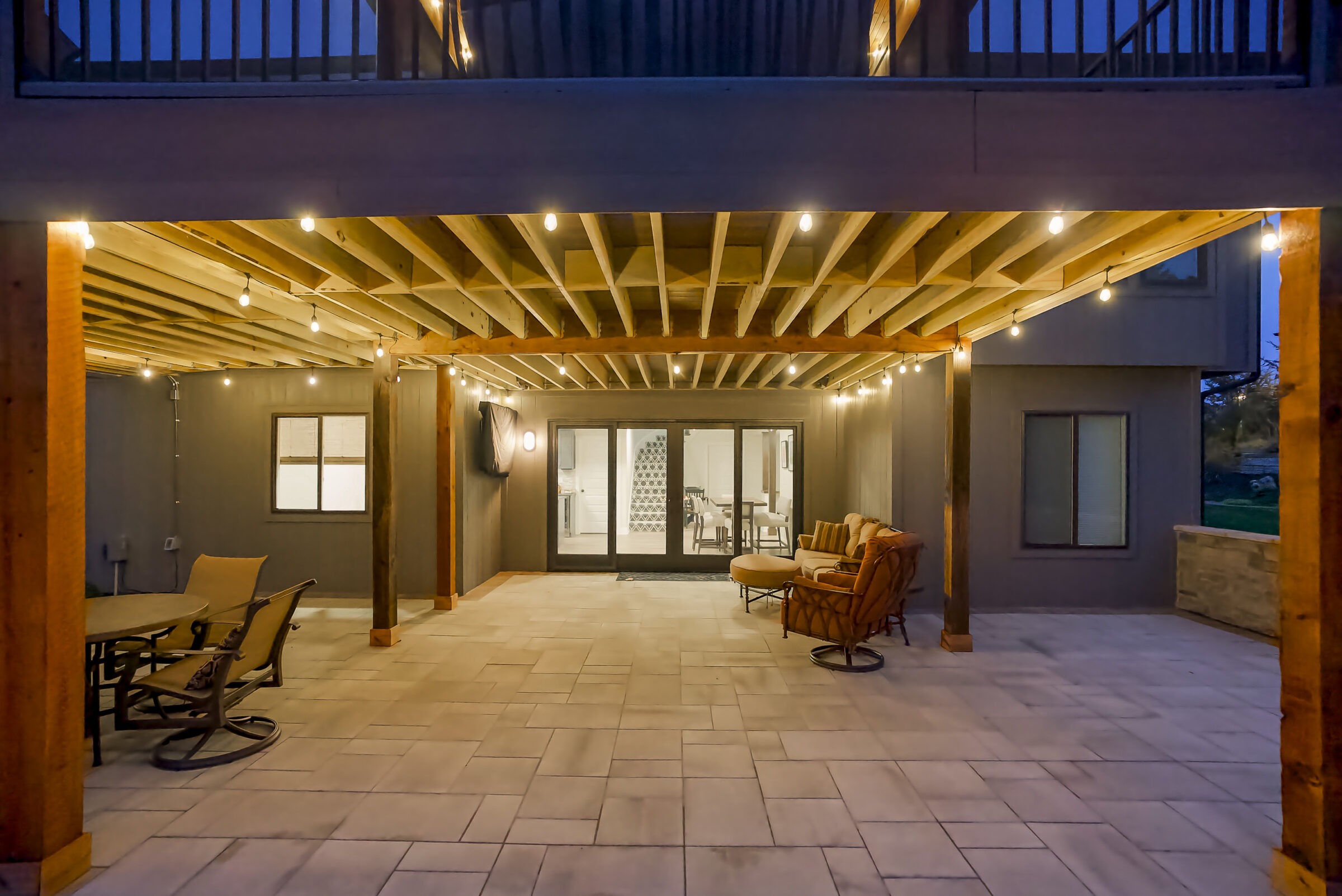 This custom-built Edwardian-style fireplace, was designed to reflect the timeless elegance of the early 20th century while perfectly complementing the aesthetic of the home. Crafted with a blend of high-quality brick and stunning Indian limestone, this fireplace offers a seamless match to the homes architecture, ensuring a harmonious transition from indoor to outdoor living. The fireplace stands over 20’ tall and 14’ wide, and includes beautiful seating benches along the front and both sides of the fireplace.